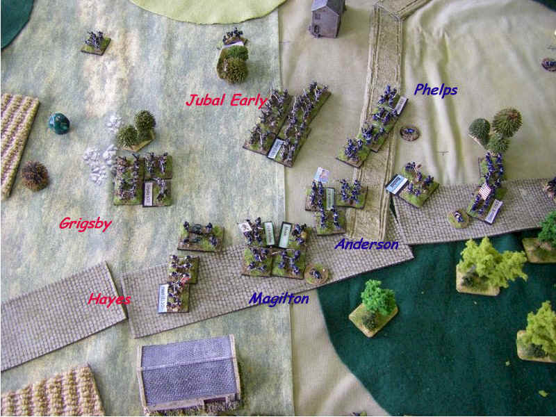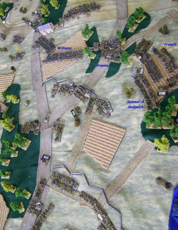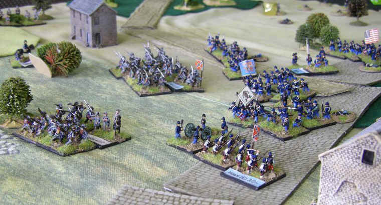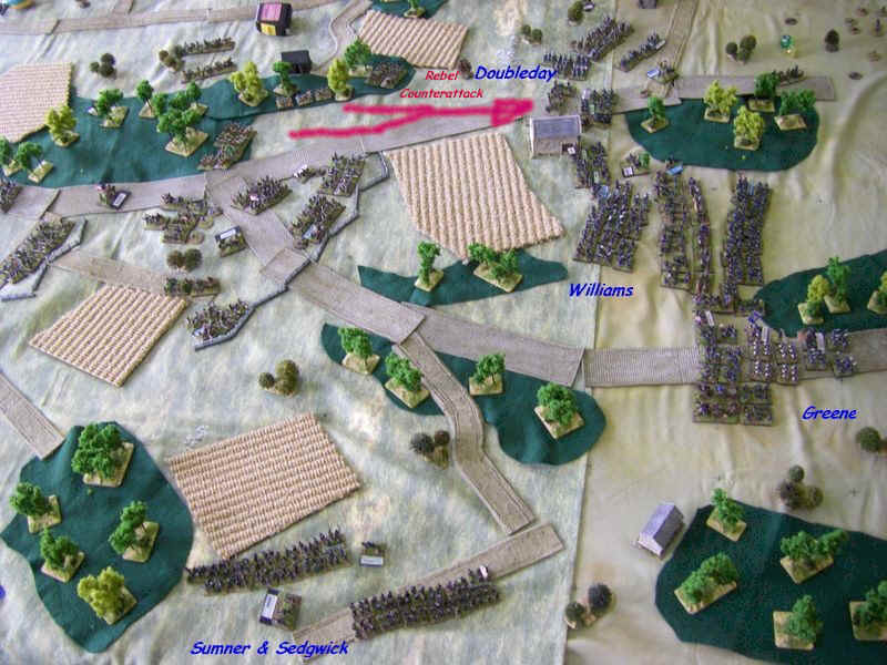 Union reinforcements were flooding in as Greene's Division also arrives to support Williams, and yet more blue coated northerners arrives under Sumner & Sedgwick - but on their right flank a brave Rebel counter-attack, led by Jubal Earley supportd by Hayes & Grigsby threatened to turn their flank and overrun the Union Grand Battery