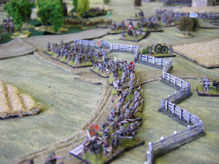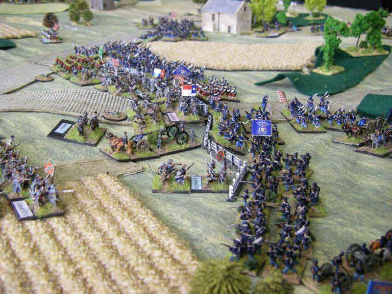 The Union troops took a terrible pounding, but pushed relentlessly onwards - the Rebels could barely hold the line, never mind throw the Federals back into the Cornfield...