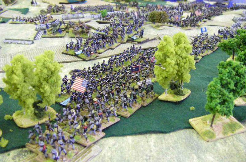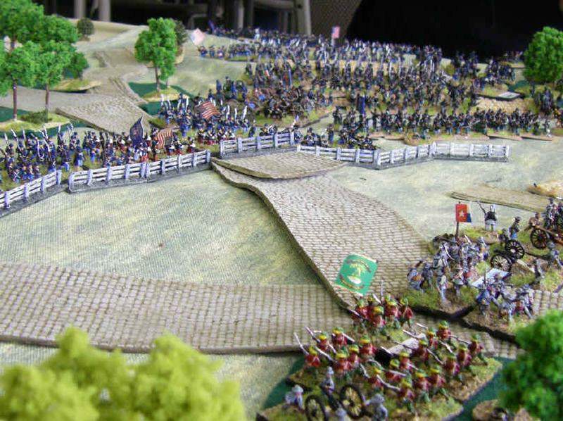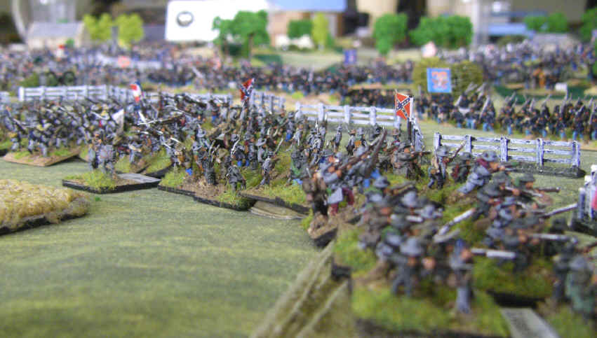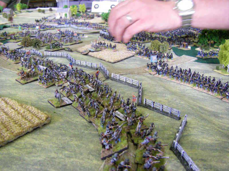 The Unions reserves were by now arriving thick and fast as the Confederate army tried to re-fill its front line positions with its depleted forces
