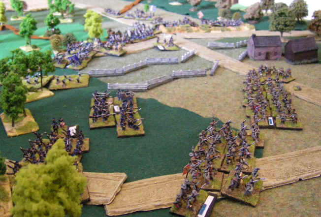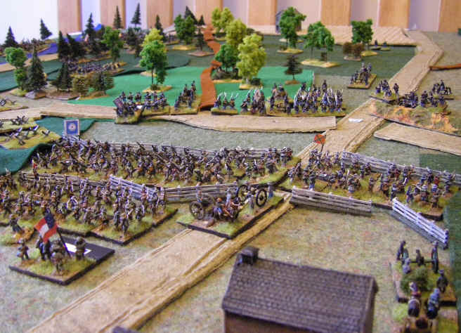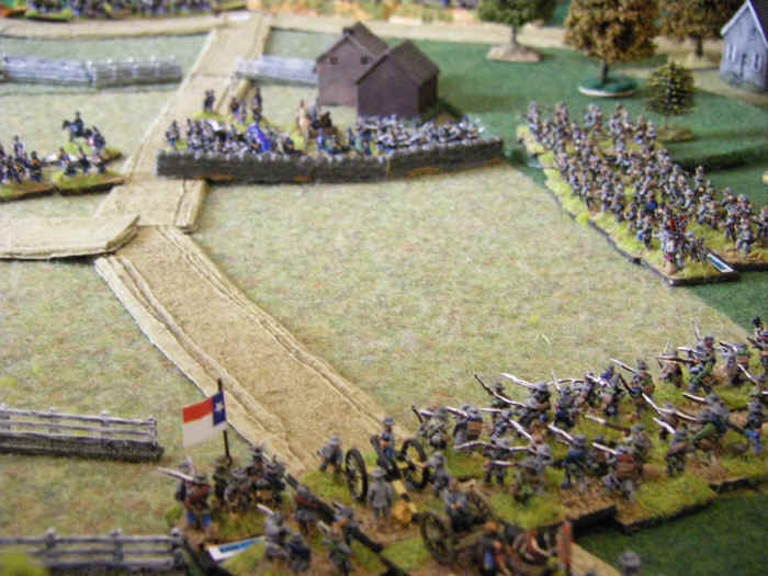 The full attack under Longstreet starts to form a traffic jam in the open ground