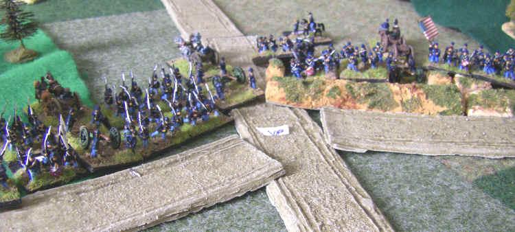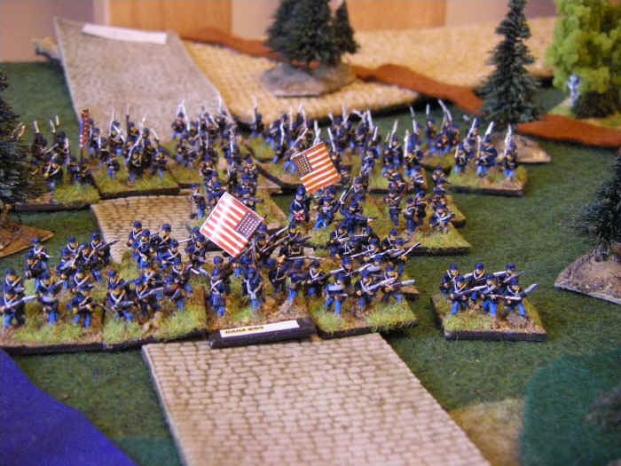 Garlands troops prepare to cross the "abatis" defending the Union front lines.