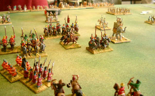 In the end as I had nearly run out of table, I had 3 attempts to win the game - Kn X vs overlapped bow, LH vs overlapped Bw (back to back - a double kill) and a shot on the elephant general, who my CinC was preventing a recoil on - all 3 failed!
