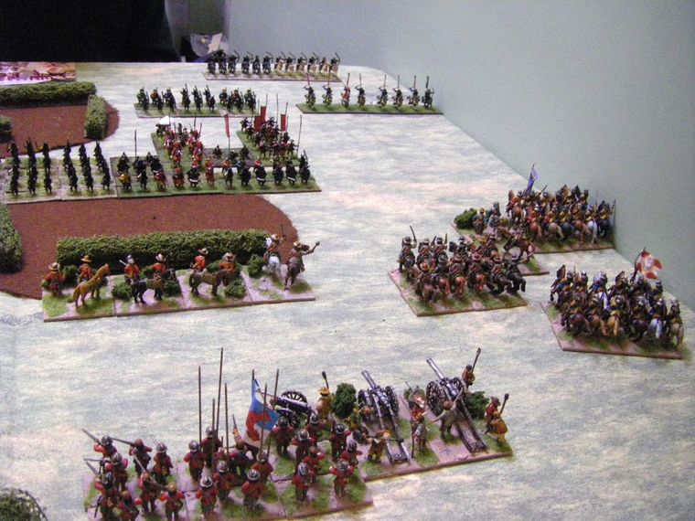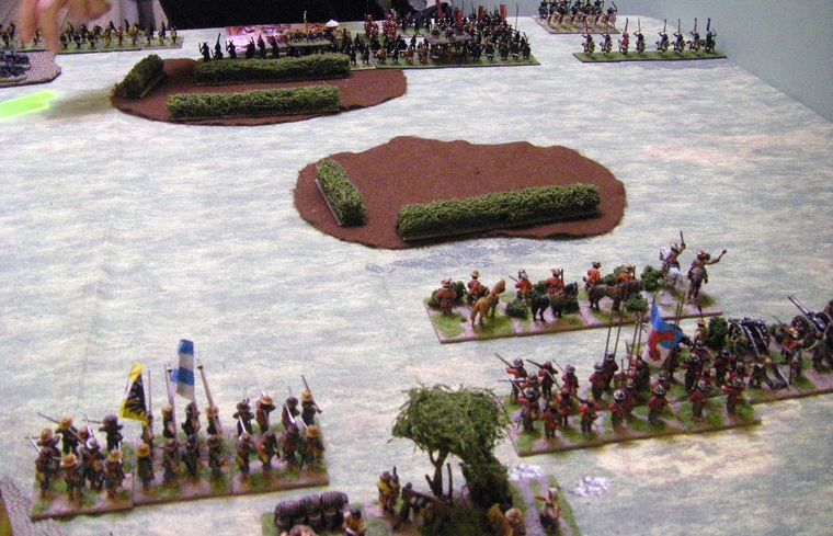 The "proper" samurai were not as cowardly, and soon developed their agricultural skills by occupying the enclosed fields immediately before the German army. The German Dragoons, already (some might say unsurprisingly) ensconced in the field marvelled as the darkly-painted malnourished dwarves milled aimlessly in front of them.