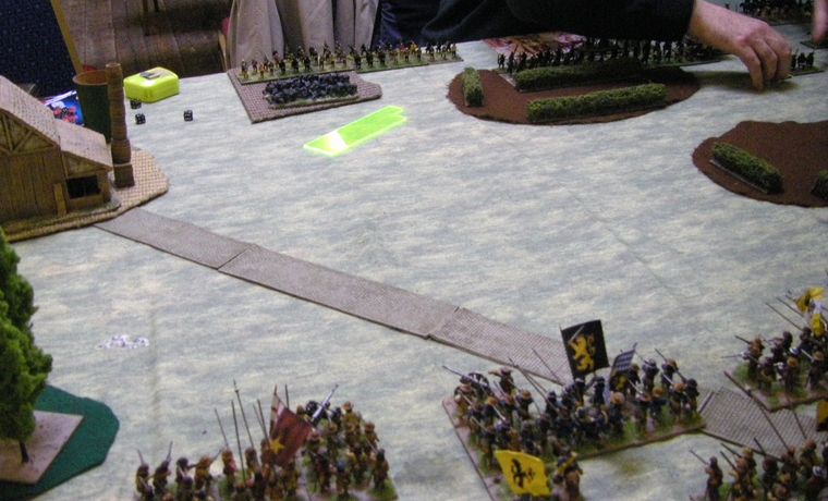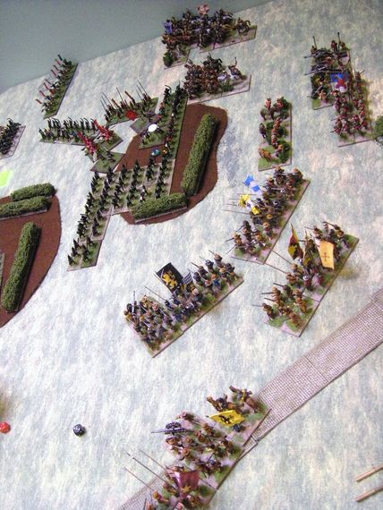 The table was cluttered with some rather imposing terrain - hedges surrounded fields, and it would take a brave steed to jump over any of them indeed, mighty as 28mm terrain is...