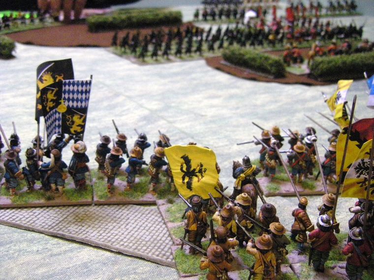 This is more like it! The Ashigaru have come out to play, and face off against a wall of German Pike and Shotte (and flags, and some little tiny guns as well)