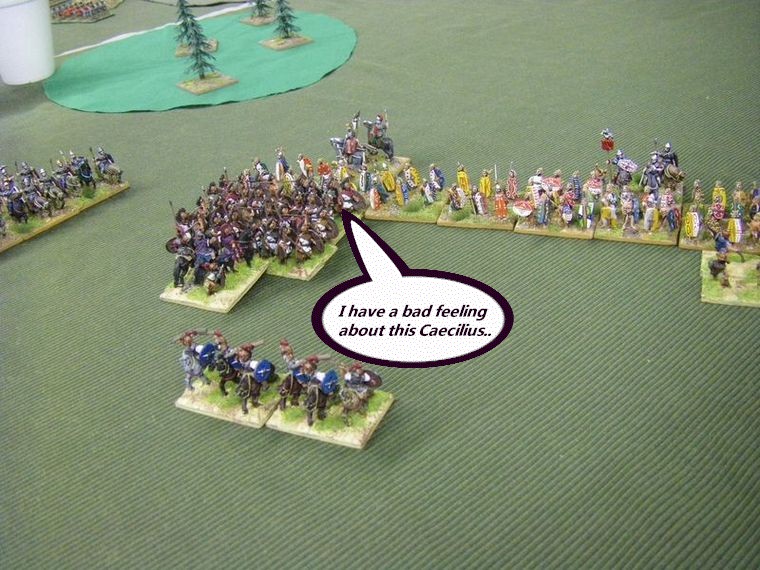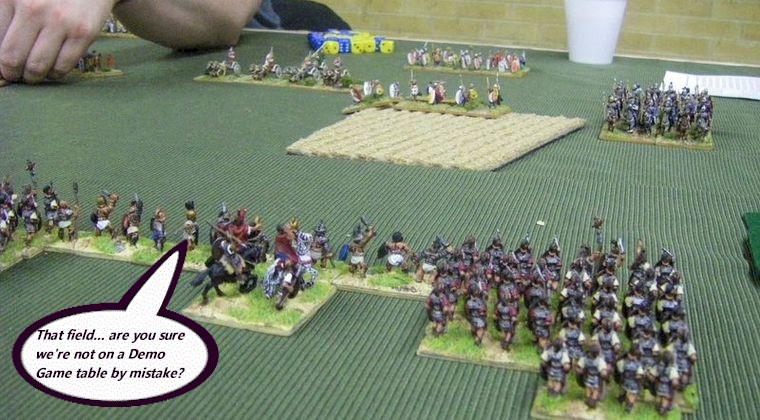 But even as the Gauls skirmished my men out of the way, the Roman cavalry and Greek slingers did likewise to the Gaeasati, allowing my legion and accompanying spearmen to dance around aimlessly in the vast open spaces of the extra-large table.