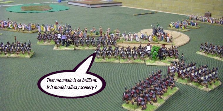 Any, of course, it was in many ways a game of maneuver on a huge mostly empty field - which is a game in which I always seem to come off worse. Sort of like facing a Gallo-Skythian army really, but with some of them dug into trenches at the top of a mountain like that one in Italy at Monte Cassino - now, if someone ever decides to attack Rome starting from Sicily, what a fantastic defensive line you could build there eh?