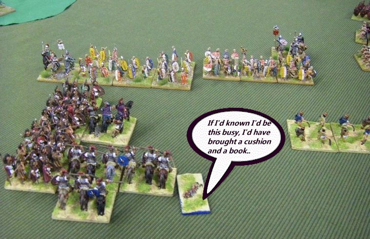 Back to the left, and a nifty expansion from the endmost legion shut the door on any possibility of a cheeky flank move by the mounted Gauls.