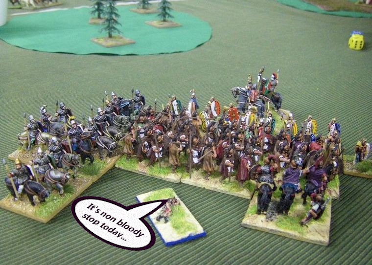 But elsewhere, in their own personal cock-up the Roman cavalry decided that winning was not for them, and broke instead leaving the hapless Theurophoroi to their fate.
