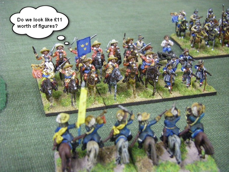 Overcome by the sheer beauty of the Enemy figures, and paralyzed by the thought of how much that unit might have cost to buy, the Swedish Horse pause before charging home....