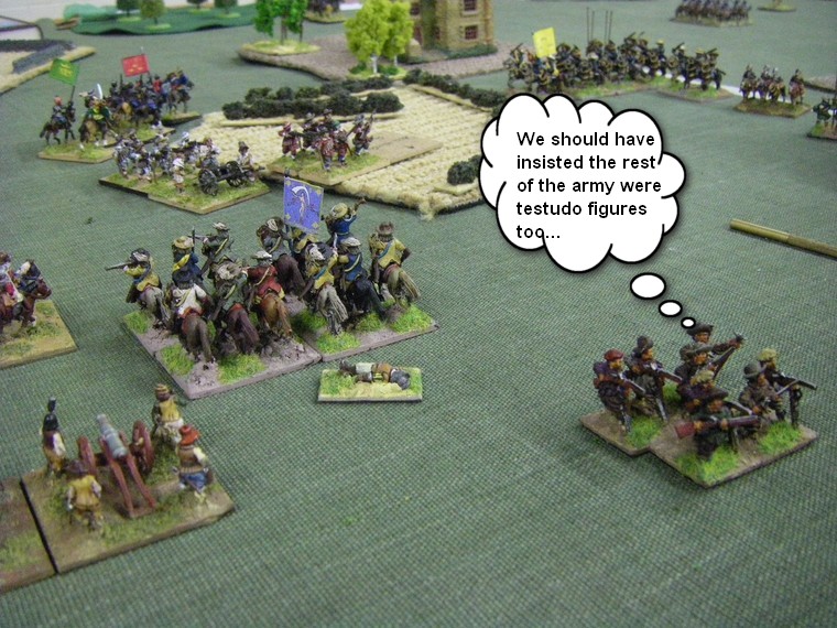 And where you underestimated the effect of the commanded shotte unit to not only level the playing field, but to actually make the opponents line of Horse stronger than yours?
