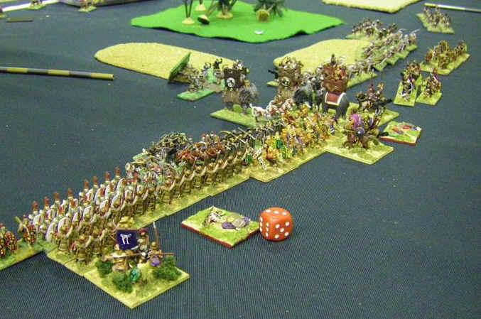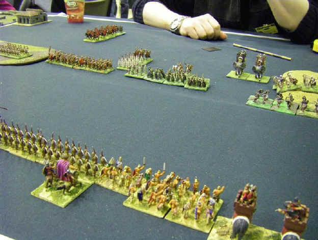 My plan was that I would be able to use my 20 bases of LMI to dominate the rough terrain and do a bit of a Hannibal - lose slowly in the middle, cave in the flanks and sweep to victory before being sent into exile in Greece, working for a tyrant and dying in ignominy and poverty.