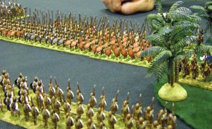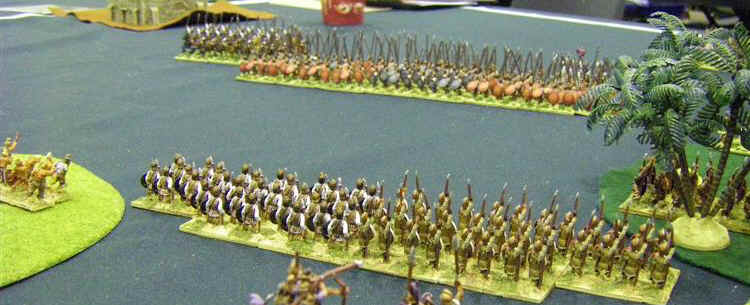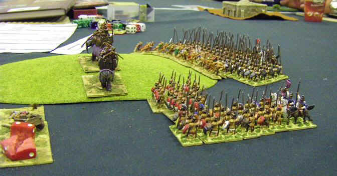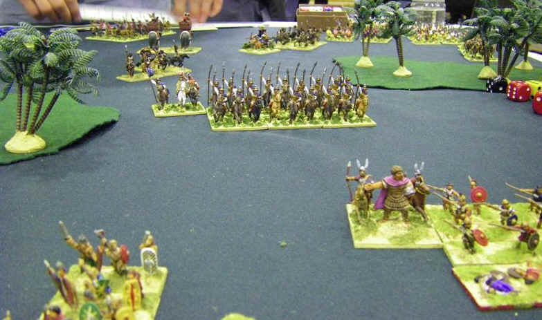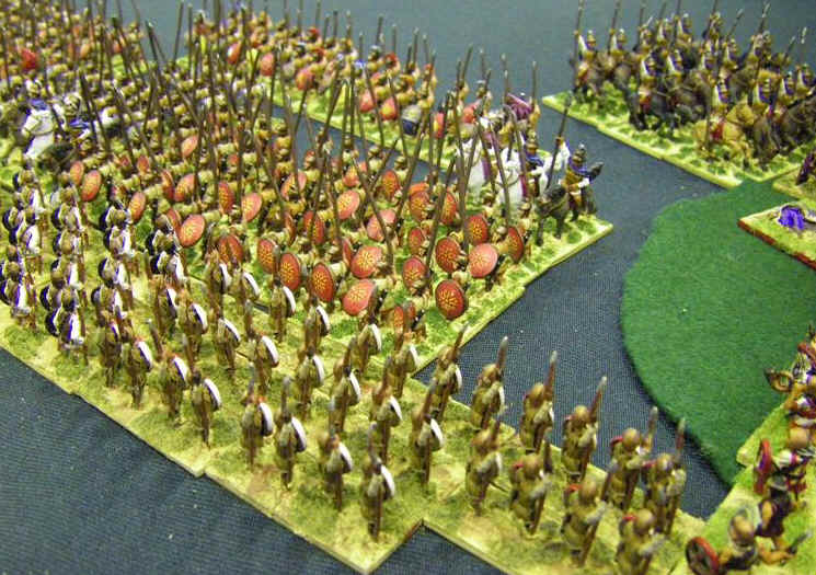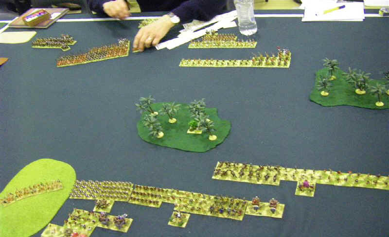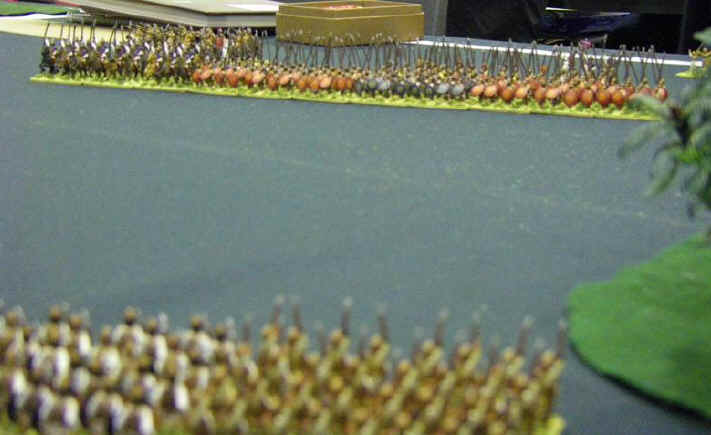 So, Id lost 2, won one, but felt I was starting to get to grips with the rules and army. My confidence against Medieval armies had evaporated however, and so I was most pleased to see another classical army up against me - club-mate Martin Van Tols Greeky looking Phyrrics