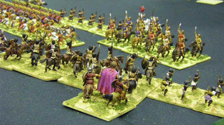 Hannibal found himself leading the initial attack, in that subtle way only a 28mm figure in a 15mm game who has been painted with a pink cloak can do.