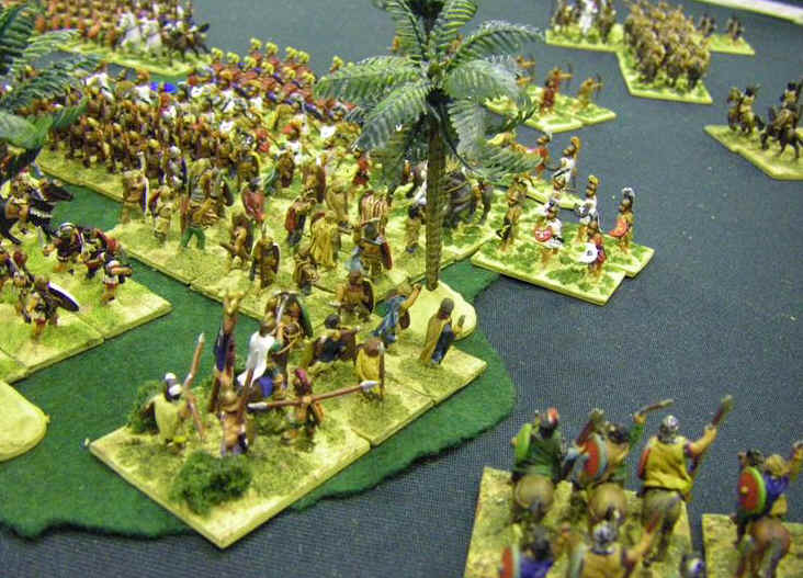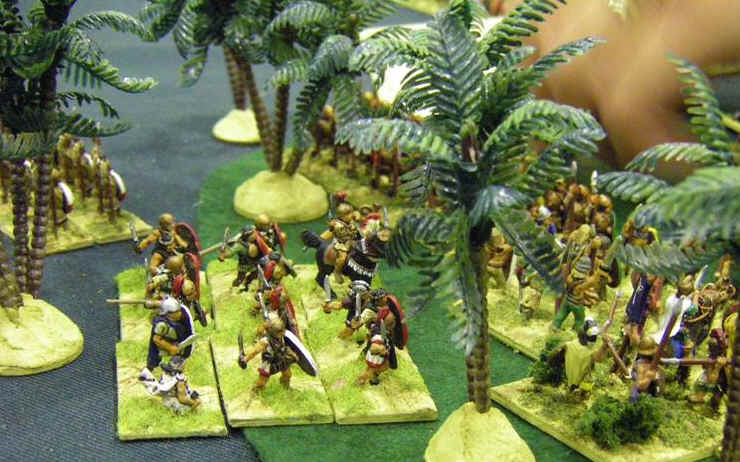 Yet more learning all round, this time on the effects of terrain. The battle had been unfolding almost entirely to plan up until the point that the Greek cavalry swept through the plantation and skittled over the pivotal section of my army and strategy. This highlighted again the difficulties of getting some types of troops to turn around, especially when they are more inclined to pursue enemies to their front!