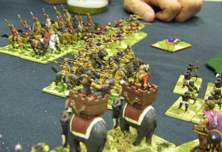 You also forgot to mention that you threw away 2 light infantry units in an experimental attempt to take on light horse - when you knew full well the odds were against you. Under these rules, ALL units count and so you were actually storing up trouble for yourself - and boy did those chickens come home to roost ! If they had been kept safe you might have had a few more bounds to play with your capital troops. I would not have made such a stupid mistake, period.