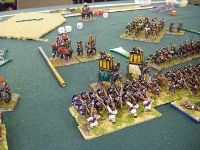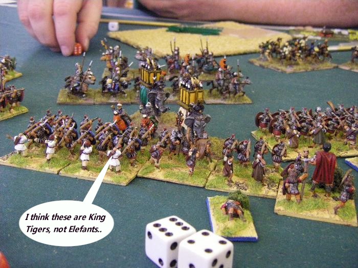 Suddenly all bets were off, as the elephants, after fighting for about a week, totally unsupported and overlapped, managed to trample the last legionaries facing them and power forwards, leaving the Roman bowmen glad to be superior and hence unruffled by the adjacent death of their colleagues.