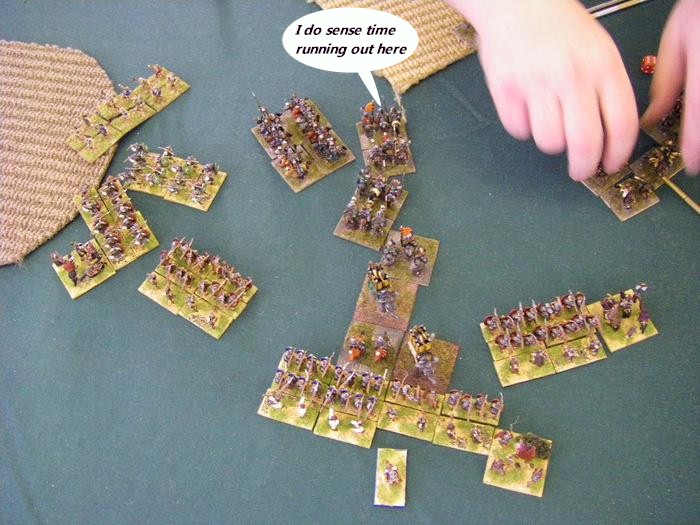 With the left flank stabilizing and the center looking like a victory was imminent the only big fat grey fly in the ointment was the un-killable elephants, who had yet again battered a legion to fragmented.