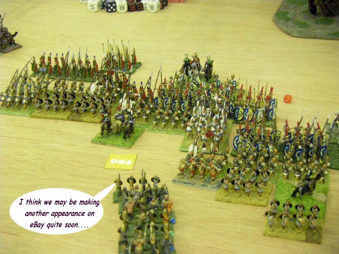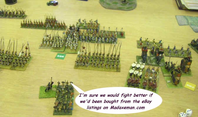 The army was some sort of Successor thingy. It was made up of troops bought from eBay, but unfortunately Dave had used the specially filtered eBay 15mm Ancients listings on this website, which only features successful troops that roll good dice (ahem)