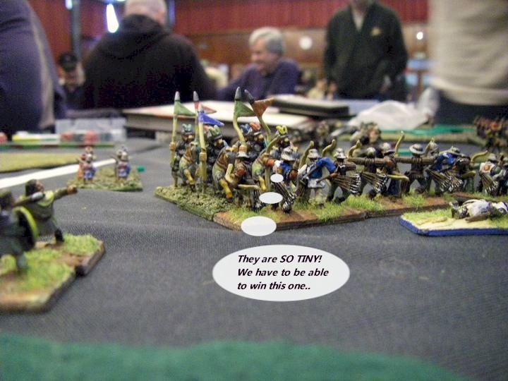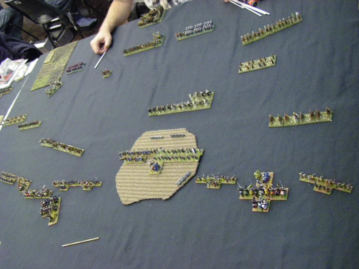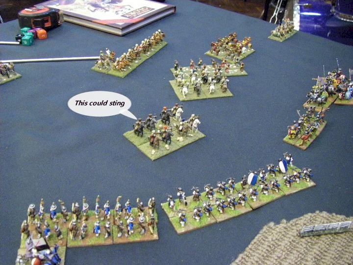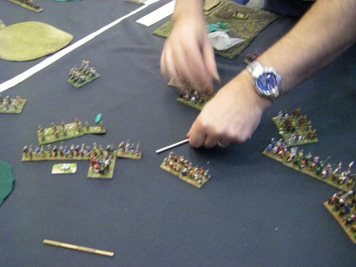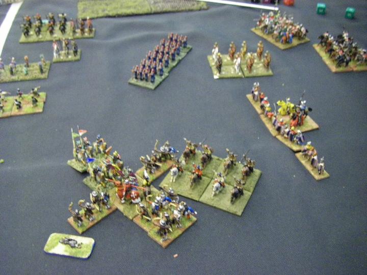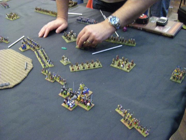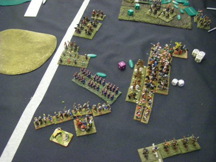 Really I put this down as an event your opponent lost rather than one you won. A big chunky charge with all his decent troops would have overwhelmed at least 2 parts of your line, leaving the rest flailing about aimlessly whilst they tried to catch LH with a move 4 inches faster than theirs for much of the game. I suppose in your defence that the composition of your army is inherently flawed and it has to have a couple of weak spots in games like this - but having as a positive the fact that your army choice is flawed is hardly ideal is it?