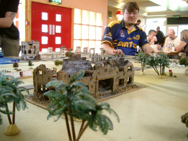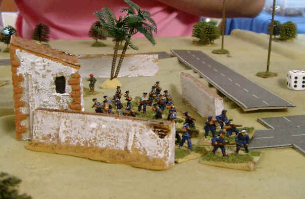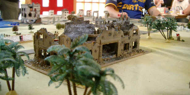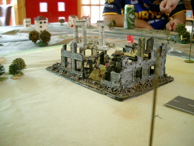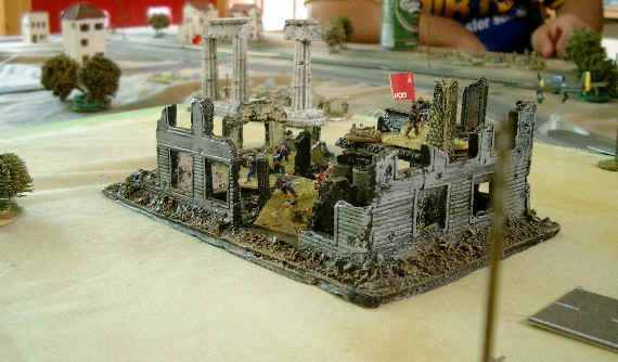 Each player commanded a platoon with 3 Nationalists and 3 Republicans. The table was set up with several "objectives on it, which were either "unaligned" factions, supply points (a factory and 2 ports) or "politically important" buildings - the Radio Station and the Church (or Cathedral, but it was a pretty small model to be that really...)